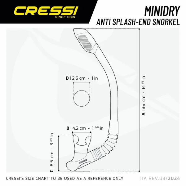 Tuba Cressi Minidry Junior – Transparent Version du modèle dry pour femmes et enfants.