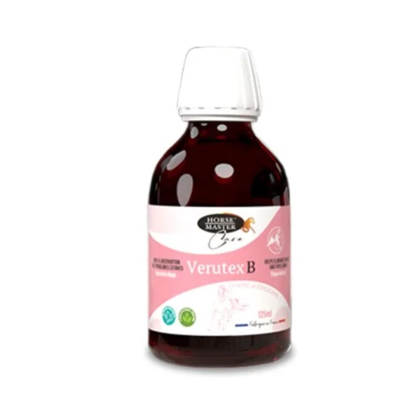 Verutex B est une solution liquide à usage externe développée par Horse Master pour traiter les verrues (papillomes) et sarcoïdes chez les chevaux. Formulé à base d’extrait de thuya et d’alcool, il s’applique localement sur la zone concernée pour aider à faire régresser ces excroissances cutanées fréquentes chez les équidés Assécher et réduire les verrues et excroissances bénignes de la peau (type papillomes et sarcoïdes). Stimuler la réponse locale naturelle de la peau grâce aux propriétés antivirales et immunostimulantes du thuya. Apporter une alternative non invasive à la chirurgie ou aux traitements lourds, grâce à une application locale douce mais ciblée. Améliorer le confort du cheval lorsque les verrues sont situées sur des zones de frottement (sangle, fourreau, lèvres, ventre). Limiter la progression ou l’irritation de sarcoïdes en début de développement, notamment autour des yeux, du museau ou des oreilles. Ce produit est particulièrement indiqué dans les cas suivants : Verrues ou sarcoïdes localisées sur les lèvres, autour des yeux, sous le ventre ou sur le fourreau. Situations esthétiques gênantes ou risquant des frottements douloureux (sangle, selles, région inguinale) Chevaux (jeunes ou adultes) présentant ces lésions gênantes, là où la chirurgie est difficile ou déconseillée . Conditions d’utilisation : Ne contient aucune substance dopante, utilisable en période de compétition. Usage réservé à l’application externe, à éviter en zones proches des muqueuses ou sur plaies ouvertes. Conserver le flacon à l’abri de la chaleur, de la lumière et bien fermé après utilisation
