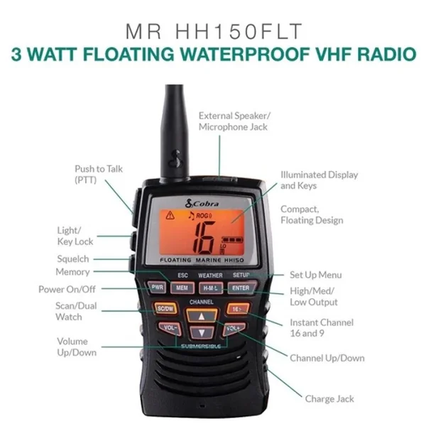 Cette radio vhf marine dispose de 3 Watts de puissance pour les communications plus longue portée et un accès complet à tous les canaux de météo de la NOAA et des sonneries d’alarme pour les urgences météorologiques.