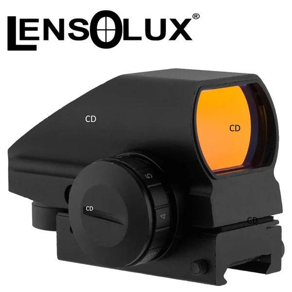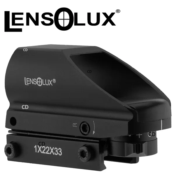 VISEUR POINT ROUGE LENSOLUX RED DOT SIGHT 1X22X33 :*Garantie 1 an.-Le red dot Lensolux est une aide pratique pour tous ceux qui veulent plus qu’une vue d’ensemble.-Boîtier étanche anti-reflets.-Le point de Led allumé peut être atténué.-Tir longue distance de qualité jusqu’à 100 mètres.-Distance minimale de lil : environ 75mm.-Intensité lumineuse réglable.-Diamètre du tube 22 x 33mm.-Livré avec montage 21,5mm.-Pile incluse : CR2032, 3V.-Multi-réticules : croix / cercle / point 2 MOA / 4 MOA.-Longueur : 82mm.